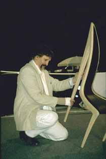 Objektstuhl "Stiletto"© in Ahorn natur oder schwarz gebeizt, Polsterung in Wurzelmaser, Edelstahl oder Leder nach Wahl